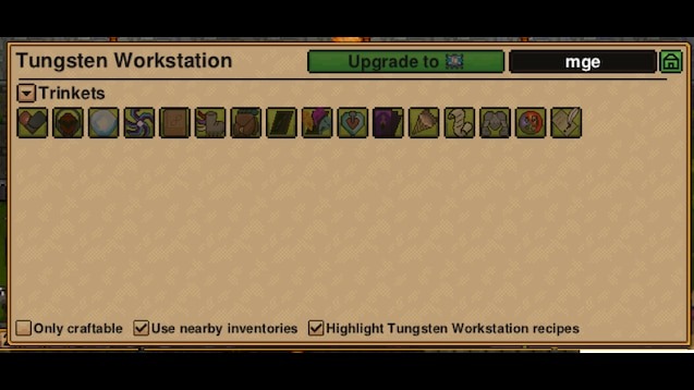 Чтобы открыть новые рецепты, достаточно использовать Tungsten Workstation и ввести в поиске “mge” — это покажет все предметы, добавленные модом. Такой подход делает процесс изучения простым и удобным даже для начинающих игроков.
