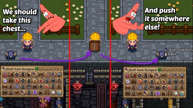Мод Move It! значительно упрощает управление предметами и хранилищами в игре Necesse. С его помощью игроки могут быстро перемещать сундуки, книжные полки и другие объекты, содержащие предметы, без необходимости переносить каждый предмет по отдельности.
