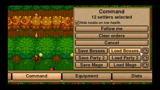 - Быстрое создание боевой группы: выберите нужных поселенцев и сохраните отряд одним нажатием