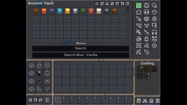 Ultra Storage — это мод для игры Necesse, который значительно расширяет возможности хранения предметов и делает инвентарь более удобным в управлении. Он добавляет целых 11 новых типов сундуков (Vaults), каждый из которых обладает огромной вместимостью и улучшенным интерфейсом, адаптированным для быстрого доступа к множеству ячеек. Этот мод создан для игроков, которым не хватает стандартных сундуков и кто хочет систематизировать ресурсы, лут и предметы без лишней суеты.