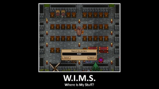 Мод Where Is My Stuff?? (W.I.M.S.) создан для быстрого и удобного поиска предметов в мире Necesse. С его помощью игроки могут мгновенно проверять содержимое сундуков и других контейнеров в радиусе 32×32 блока вокруг персонажа. Мод полностью клиентский, что означает отсутствие необходимости установки на сервере или у других игроков.