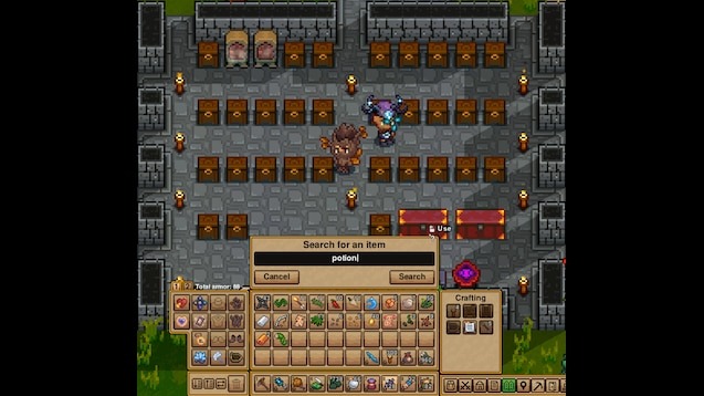 - Окно поиска отображается прямо над инвентарём игрока.
